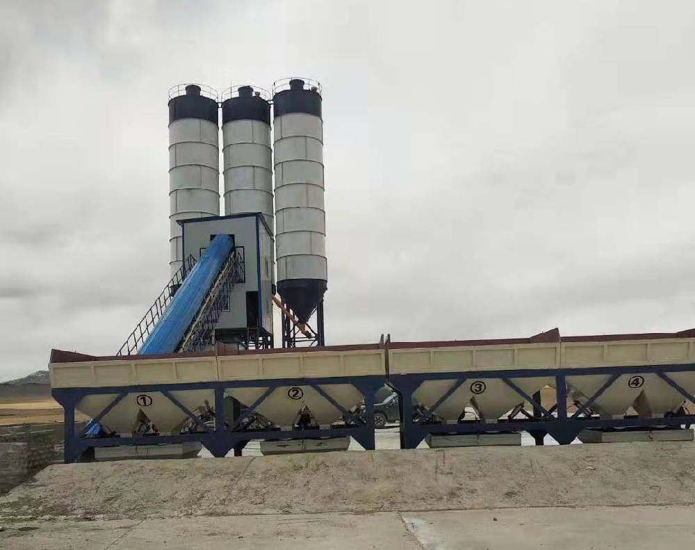 The aggregate is discharged into the aggregate metering bucket by the unloading door of the bone bin of the batching station for measurement. After the measurement is completed, the aggregate is unloaded onto the far-rotating flat belt, which is sent to the inclined belt machine, which is transported to the waiting hopper at the upper part of the mixer for instruction. Meanwhile, cement and fly ash are transported to their respective metering buckets by the screw conveyor for measurement. Water and admixtures are respectively sent to the respective metering bucket by the pump and admixture pump for measurement, after the measurement of various materials, the control system issued instructions to begin to feed into the mixer for mixing, after the completion of mixing, open the discharge door of the mixer, the concrete is unloaded into the mixing transport through the discharge hopper, and then enter the next working cycle.